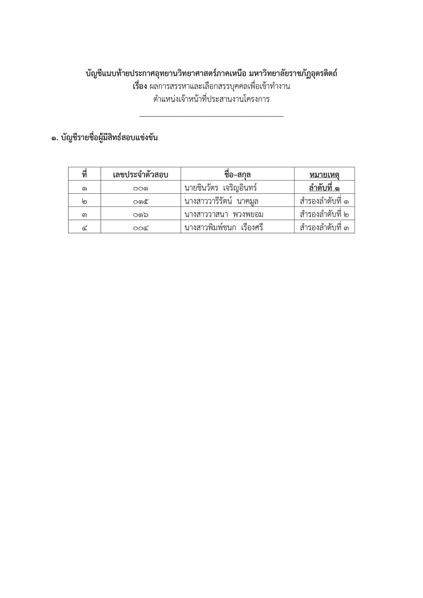 ทั้งนี้ผู้ผ่านการคัดเลือกลำดับที่ 1 มารายงานตัวและเริ่มปฏิบัติงานในวันศุกร์ที่ 1 กันยายน 2566 เวลา 08.30 น. ณ อาคาร Innovation Startup อุทยานวิทยาศาสตร์ภาคเหนือ มหาวิทยาลัยราชภัฏอุตรดิตถ์